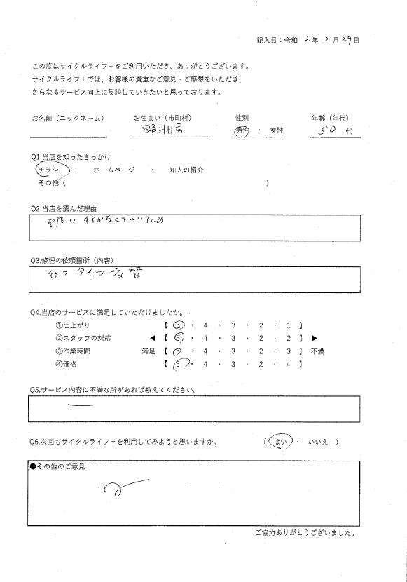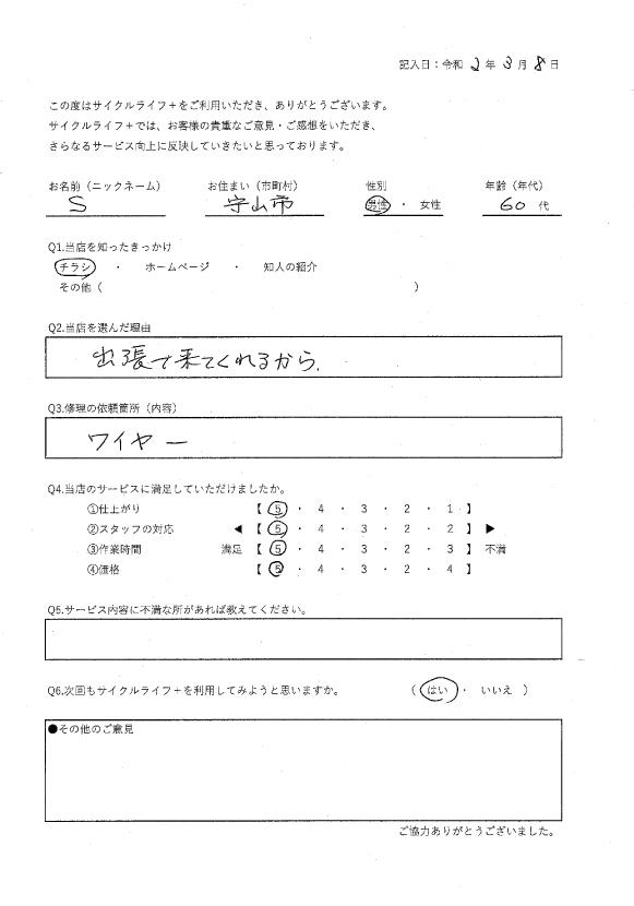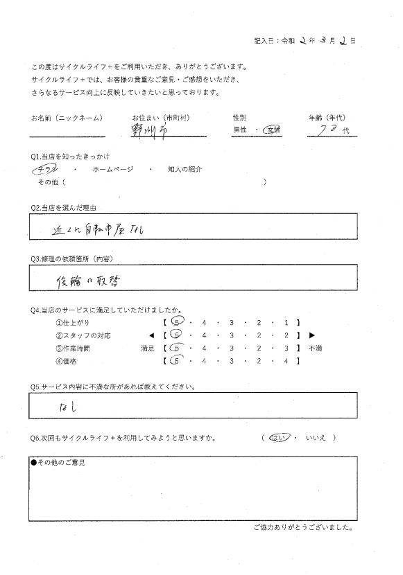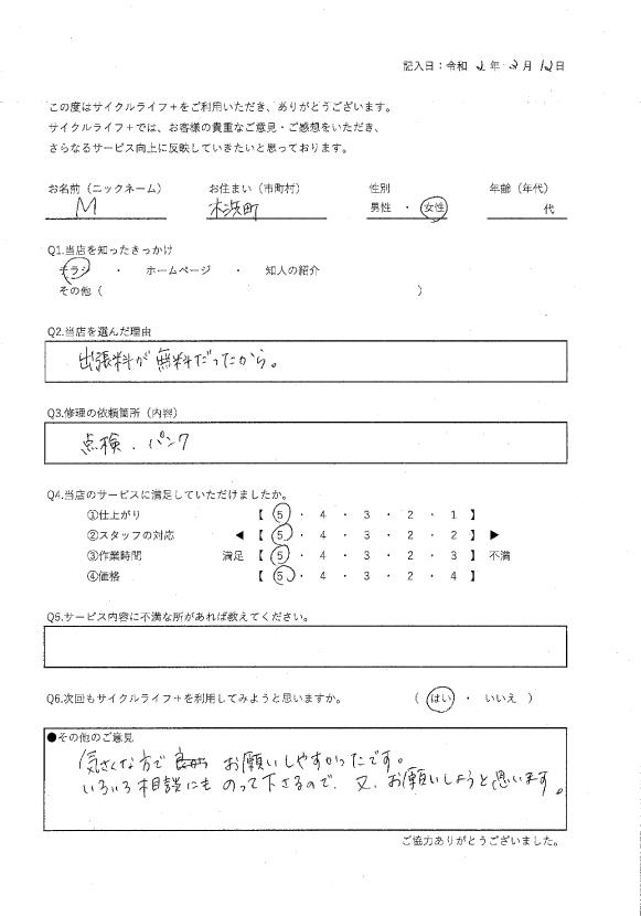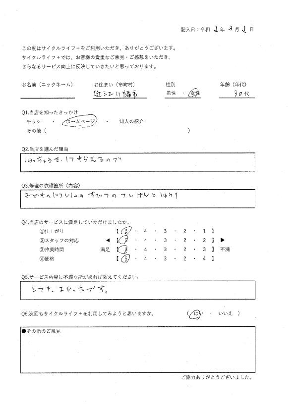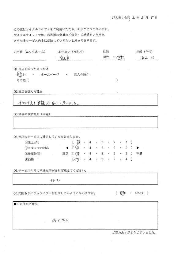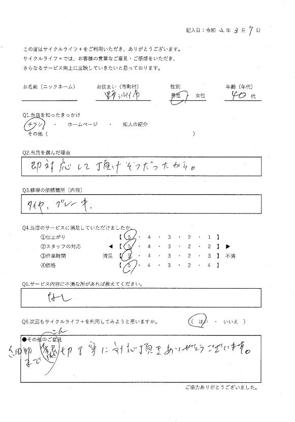 当店を選んだ理由:近くに自転車屋がないため。
